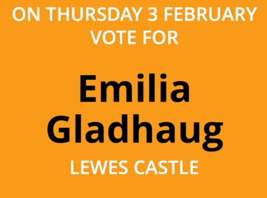I am supporting Emilia Gladhaug who is standing as the Liberal Democrat candidate in the Lewes Castle ward by-election on Thursday 3 February 2022.