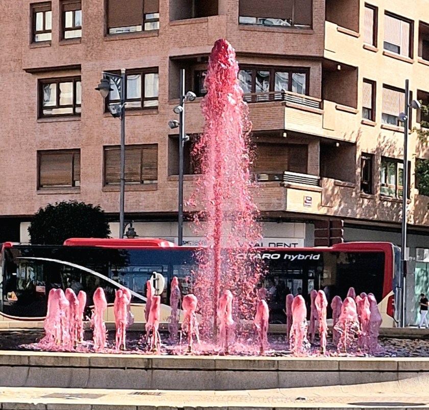 In the centre of this city was a ‘wine’ fountain. I don’t think it’s wine but just coloured red for festivals. Wine is important to this region – we were in the centre of the Rioja wine growing area so no wonder they celebrate their wine.!