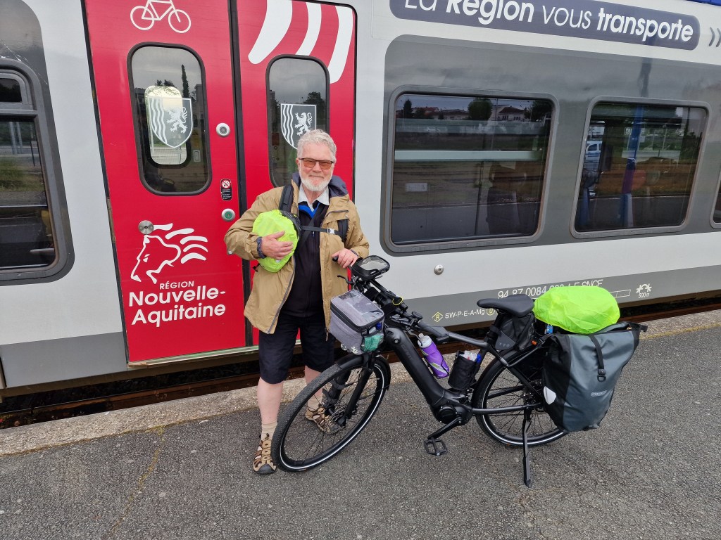 The real problem was travelling by train with bicycles that will ‘fully assembled’. If we had bicycles which could be disassembled the journey would be relatively simple but electric bikes are not easy to disassemble and they don’t fit into a box or bag of a maximum size of 130 cm x 90 cm. Therefore, we had to find railway routes which allowed us to take our bikes on and off just in the same way as you would on local trains here in Sussex. The difference is we were covering much longer distances. From St Malo to the start of our journey was about 400 km (250 miles). However, with my growing knowledge of the French railway system I was able to achieve this, and we had the added benefit of staying overnight at the atmospheric old town in Nantes and at La Rochelle which is a beautiful ancient port on the west coast of France on our route.