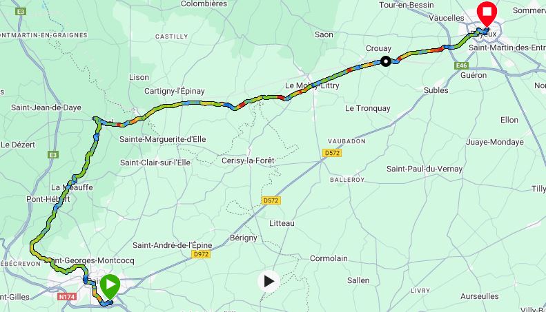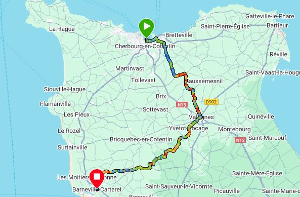 This section is about 260 km (160 miles) through the Normandy countryside. This is familiar countryside for us as we have been over to France and cycled through this area many times.