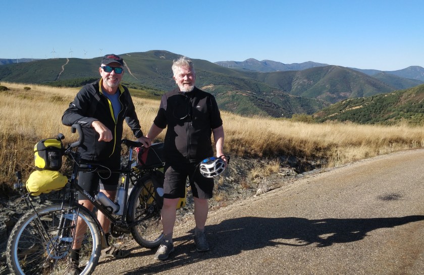 My cycling companion, Jonathan Gilburt and me in the mountains as we enter the region of Galicia